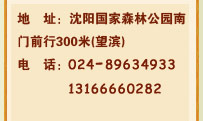 地 址:沈陽(yáng)國(guó)家森林公園南門前行300米(望濱) 電 話:024-89634933 13166660282  024-24821827